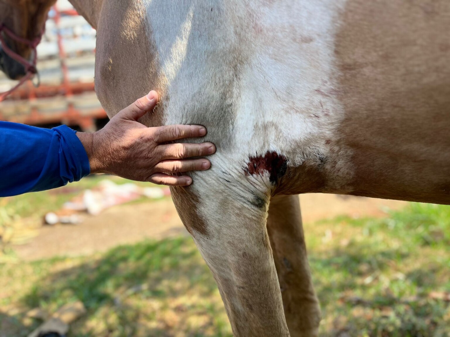 De acordo com informações levantadas pelas equipes, uma égua entrou em trabalho de parto no local e, nesse momento, sofreu agressões dos próprios responsáveis. Antes de fugirem, os suspeitos ainda deixaram o animal amarrado, aumentando o sofrimento e colocando sua vida em risco.