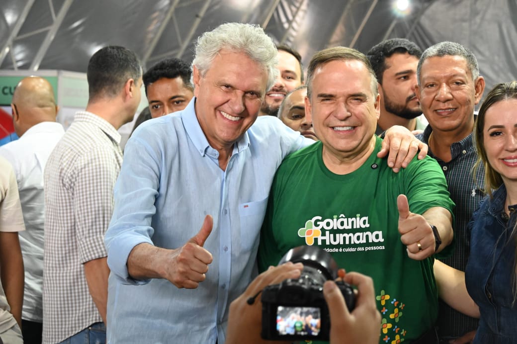 O prefeito Sandro Mabel, acompanhado do governador Ronaldo Caiado, abriu neste sábado (18/10) o Goiânia + Humana: edição especial de aniversário da capital, no Conjunto Vera Cruz II. O evento contou com a presença de dezenas de lideranças, entre elas, representantes da Câmara Municipal, o prefeito de Trindade, Marden Júnior, e o diretor da Secretaria Executiva do Ministério da Saúde, Nilton Pereira. Na oportunidade, também foi realizada a abertura oficial do Dia D de multivacinação, que acontece em todo o país.