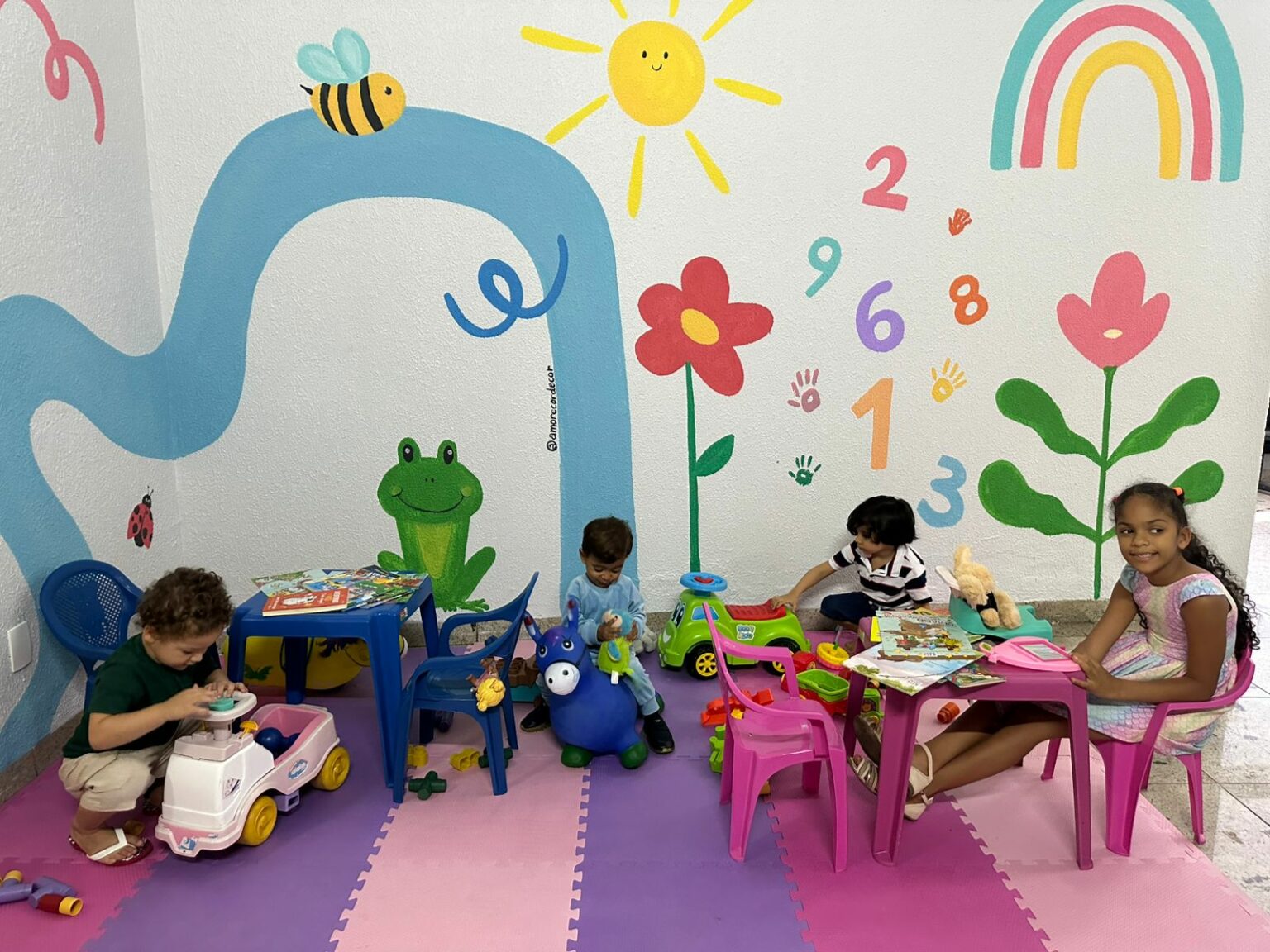 As paredes do espaço disponibilizado para a brinquedoteca receberam pintura feita por uma paciente atendida no hospital, a artista plástica Amanda Dias. Ela tem dois filhos que nasceram na unidade de saúde e, como forma de agradecimento pelo atendimento recebido na maternidade, doou as pinturas.