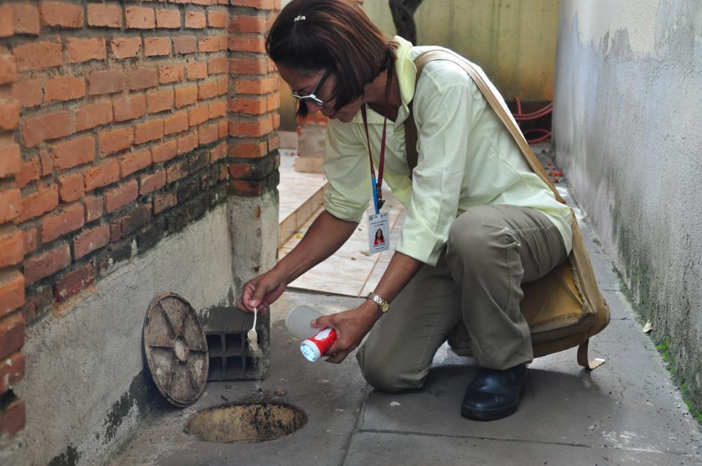 6) Adicione água sanitária, ou outro desinfetante, nos ralos e canaletas: ajuda a prevenir o acúmulo de água nestes locais;