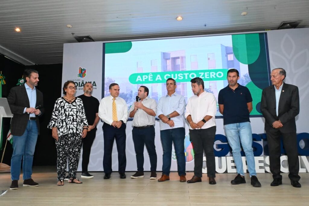 O prefeito Sandro Mabel apresentou, nesta segunda-feira (9/3), no Paço Municipal, o Edital Nº 002/2026 para a doação de 496 apartamentos de interesse social. A parceria com o Governo de Goiás é voltada para famílias de baixa renda em déficit habitacional. As unidades habitacionais estão localizadas nos residenciais Iris Rezende IV e V, e foram viabilizadas por meio do programa estadual Apê Custo Zero, integrado ao Minha Casa Minha Vida (Faixa Urbano I, Fundo de Arrendamento Residencial – FAR).