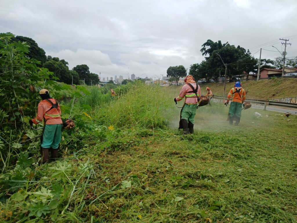 Serviço contempla praças e grandes eixos viários durante a primeira semana de março; no último fim de semana, foram roçados mais de 400 mil m2, o equivalente a quase dois Parques Areião.